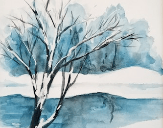 I love painting snow, or even drawing it, but whichever painting medium you choose requires a different approach. In a nutshell, when you use watercolours you basically don’t paint the snow other than snow shadows. That involves a lot of forward planning and either painting very carefully to leave the white snow as white paper, or you have to mask out the areas you want to be snowy before you paint and then remove the masking fluid afterwards.