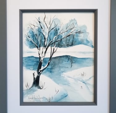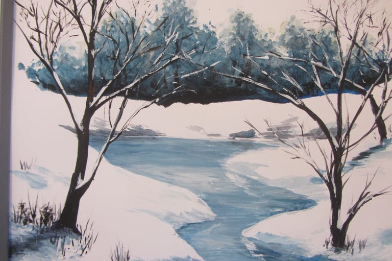 It is easy to understand how people would think that the thin washes at the top of this painting that have absorbed into the paper were done in watercolours as it is one of the classic features of this medium. I used it in the initial painting "Frozen Lake" (below).