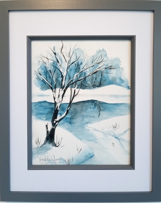 The two paintings have very similar subjects and almost identical colour palettes. I had actually painted “Frozen Lake” as a fore-runner to “Frozen in Time” not only to try out the subject and colour palette, but in order to decide which painting medium to use.