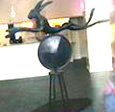 Day after day, my favourite patron would walk past this black metal sculpture of a hare leaping over a disc (could be sun or moon) in a hotel in Basel in Switzerland. She wasn’t going round this hotel looking for inspiration for her latest commissioned work of art but there was something really inspiring about this sculpture so she took a photograph of it and sent it to me. “Can you make a painting out of it with the hare but without the tables and chairs in the background?” she asked. “It’s a bit mad but I trust your judgement and artistic skills – you are my ‘go to’ artist.”